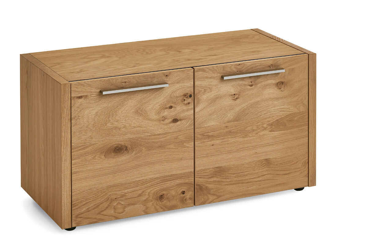 - Korpus: Eiche bianco furniert, oben mit einer Hirnholzkante