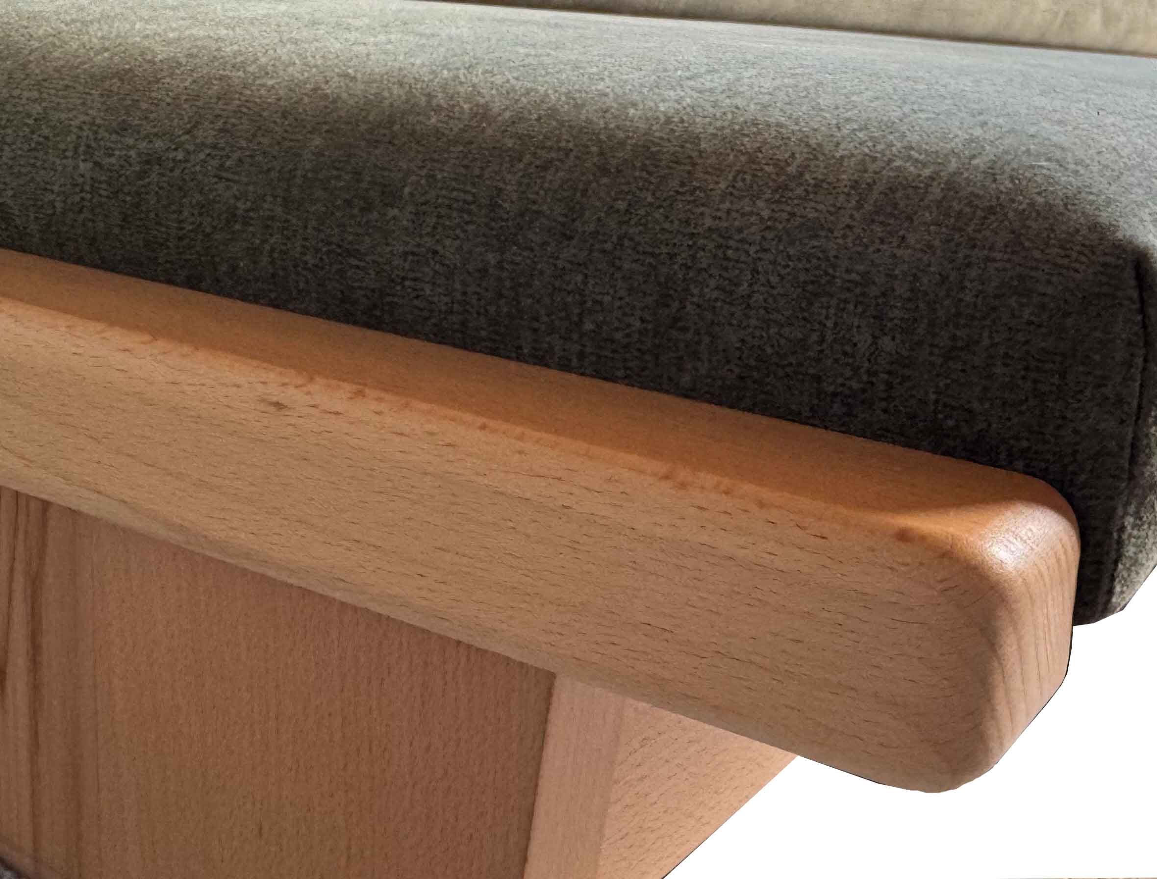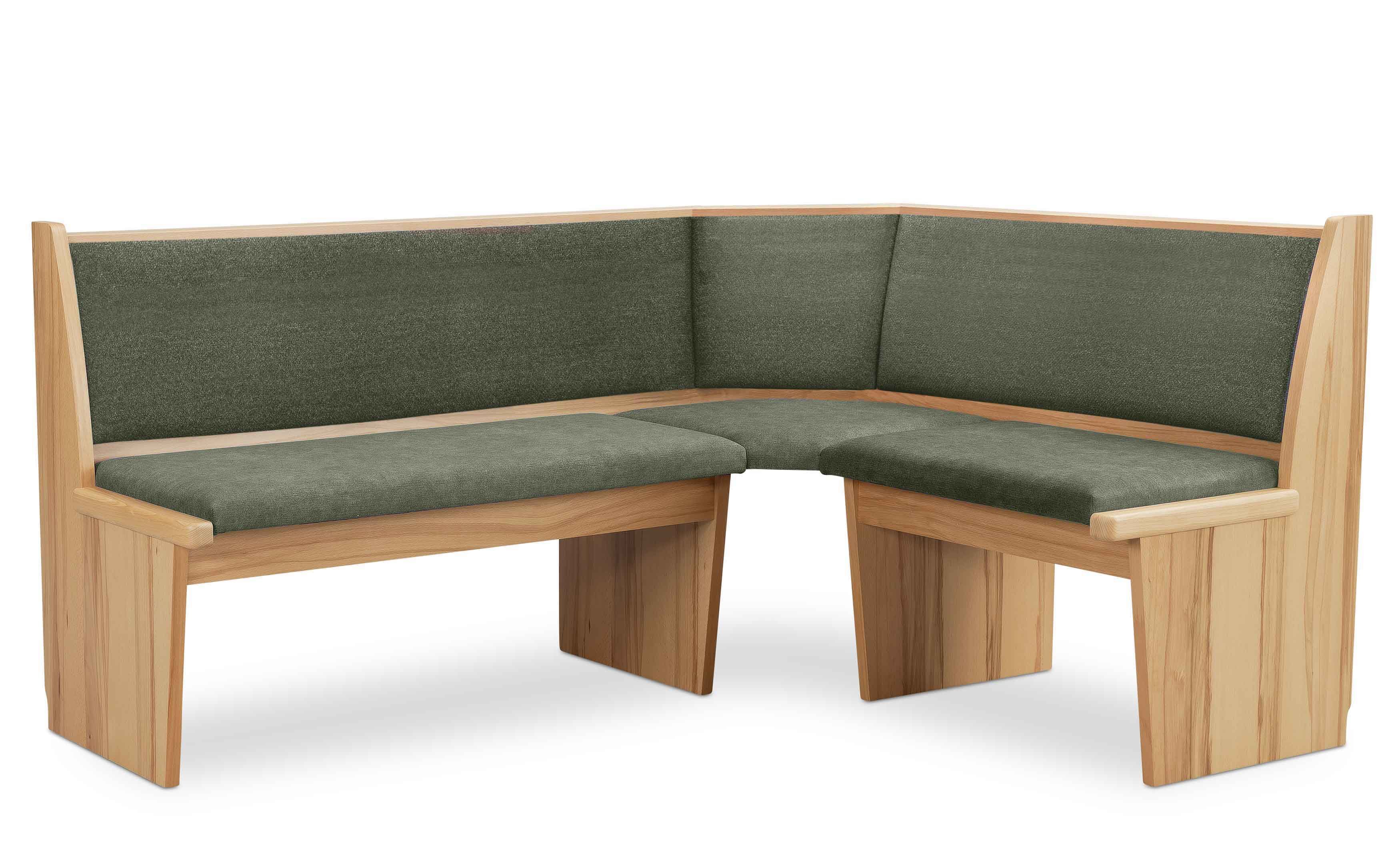 Gefertigt aus teilmassiver Kernbuche überzeugt die Schösswender Eckbank mit ihrer natürlichen, warmen Holzoptik und robusten Verarbeitung. Die großzügigen Maße von 175 x 235 cm bieten ausreichend Platz für Familie und Gäste – ideal für gemütliche Runden in Ihrer Wohnküche oder im Esszimmer. Der grüne Bezug verleiht dem Raum eine frische und wohnliche Note. Dank der praktischen Trapezecke entsteht ein besonders bequemer und kommunikativer Sitzplatz in der Ecke. Zusätzlichen Stauraum bietet die integrierte Truhe unter den Sitzflächen. Hier finden Tischwäsche, saisonale Deko oder andere Alltagsgegenstände ihren Platz – ordentlich verstaut und jederzeit griffbereit. Dank des Micro-Tonnentaschenfederkerns sitzen Sie auf dieser Eckbank lange Zeit bequem, ohne dass sich diese durchsitzt. Durch die Vielzahl kleiner Federn passt sich die Polsterung punktgenau an den Körper an. Das sorgt für ein angenehmes Sitzgefühl mit optimaler Unterstützung genau dort, wo Druck entsteht. Auch bei längerem Sitzen entstehen kaum Druckstellen, was den Sitzkomfort deutlich erhöht.
