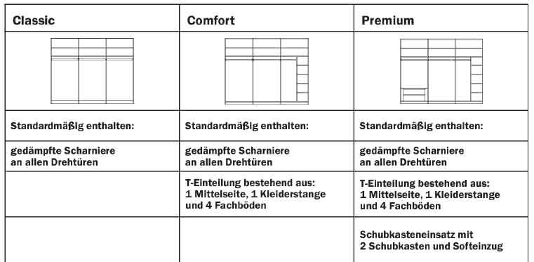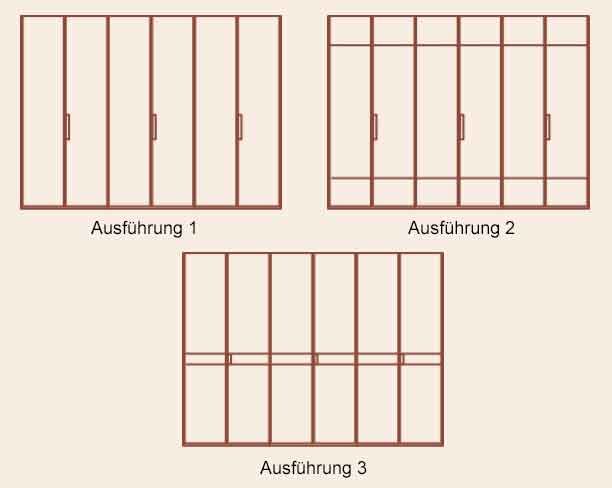 - Breite 300 cm: 3türig (innen 97 / 97 / 97 cm)