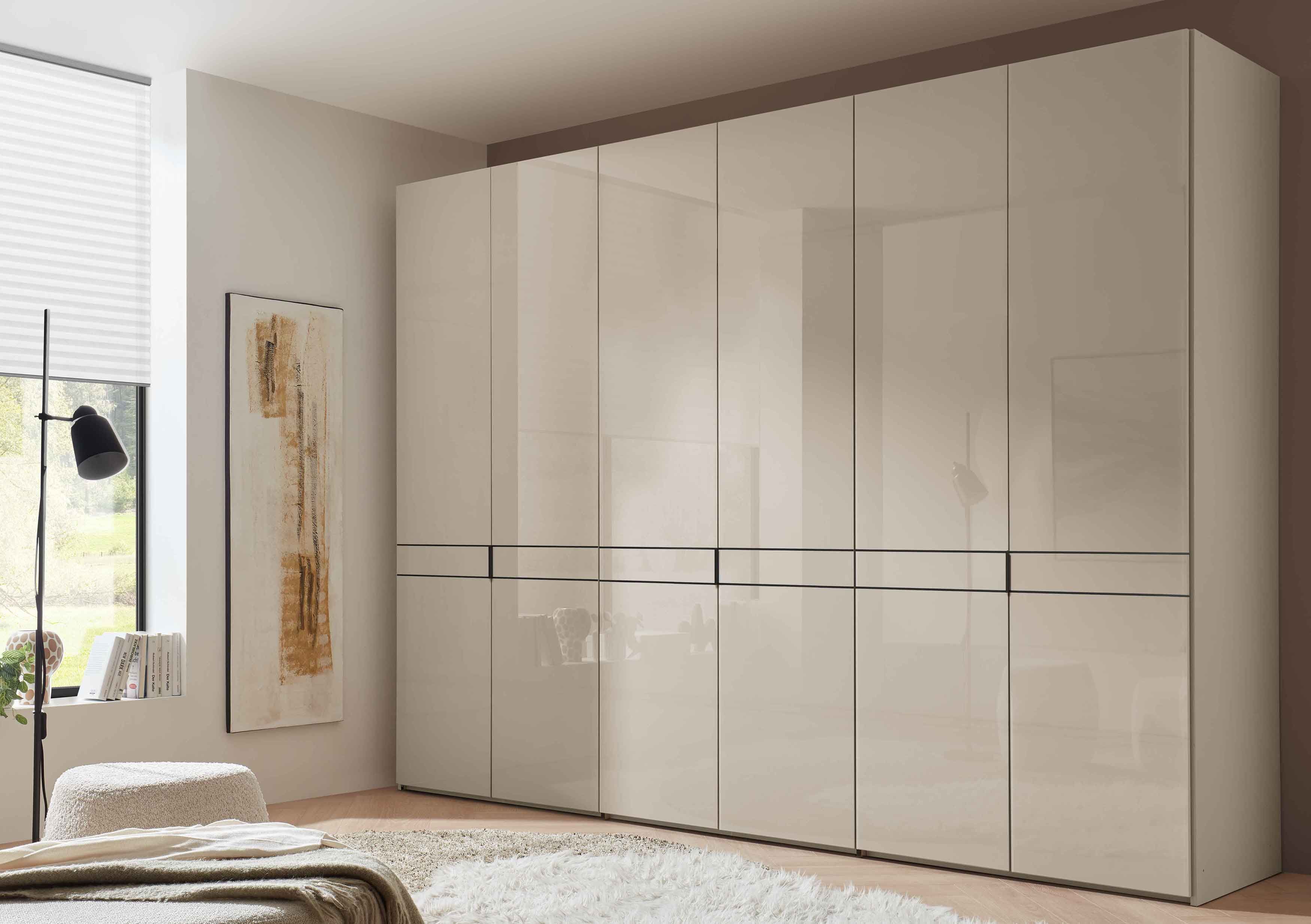Der Kleiderschrank von Staud präsentiert sich hier mit einer stilvollen Glasfront, die auf Wunsch zweifarbig gestaltet oder mit einem Spiegel veredelt werden kann. Vier attraktive Korpusdekore und drei edle Glasfarben bieten vielfältige Möglichkeiten zur individuellen Gestaltung. Abgerundet wird das Design durch wahlweise alufarbene oder schwarze Leisten und Griffe, die sich harmonisch in Ihr Einrichtungskonzept einfügen. Außerdem lässt sich die Front durch Zierleisten unterbrechen, was dem Kleiderschrank eine filigranere Optik verleiht und ihn zugleich wohnlicher und eleganter wirken lässt. Damit sich der Extenso flexibel in unterschiedlich große Schlafzimmer integrieren lässt, ist er in Breiten von 150 bis 300 cm erhältlich. Zwei wählbare Schrankhöhen ermöglichen zudem maximalen Stauraum für Ihre Raumsituation. Dieser Stauraum lässt sich mit drei Ausstattungs-Paketen perfektionieren: Comfort mit Böden und Kleiderstangen bis hin zu Premium, das mit praktischen Schubladen, hochwertigen Dämpfungsbeschlägen und durchdachten Innenlösungen keine Wünsche offenlässt.