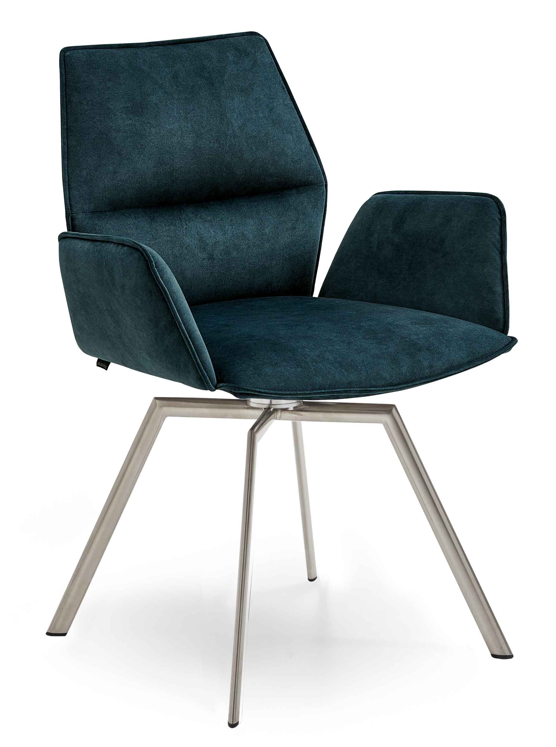 Der Armlehnstuhl Carola vereint Stil mit komfortabler Funktionalität und bietet Ihnen ein Sitzgefühl, das Sie nicht mehr missen möchten. Besonders die bequemen Armlehnen machen ihn zu einem echten Lieblingsplatz am Esstisch: Sie unterstützen eine entspannte Haltung, entlasten den Oberkörper und laden dazu ein, länger und bequemer zu verweilen. Diese Venjakob Stühle überzeugen durch eine klare Formensprache und lassen sich dank seines Metallgestells in unterschiedlichen Ausführungen perfekt an Ihren Wohnstil anpassen. Ob schlichte Spiderbeine oder ein aufwendig filigranes Metallgestell – wählen Sie das, was zu Ihrem Ambiente passt. Wer mehr Bewegungsfreiheit wünscht, kann den Carola auch als Drehsessel, Schwingsessel oder einer Kombination aus beidem ausstatten. Die komfortable, ergonomisch geformte Sitzschale ist mit einer hochwertigen Schaumauflage gepolstert und sorgt für ausgezeichneten Sitzkomfort – auch bei längeren Runden am Tisch. Für die Bezugsgestaltung steht eine große Auswahl an Stoffen und Echtledervarianten bereit. Auf Wunsch verarbeitet Venjakob sogar individuelle Kundenstoffe – ein besonderer Service für alle, die Wert auf Individualität und Perfektion am Esstisch legen. Mit einer Belastbarkeit von bis zu 140 kg und der 5-jährigen Garantie, die Sie mit dem Venjakob-Produktpass erhalten, ist dieser bequeme Sessel für den Esstisch eine lohnenswerte und langlebige Investition in Stil und Komfort.