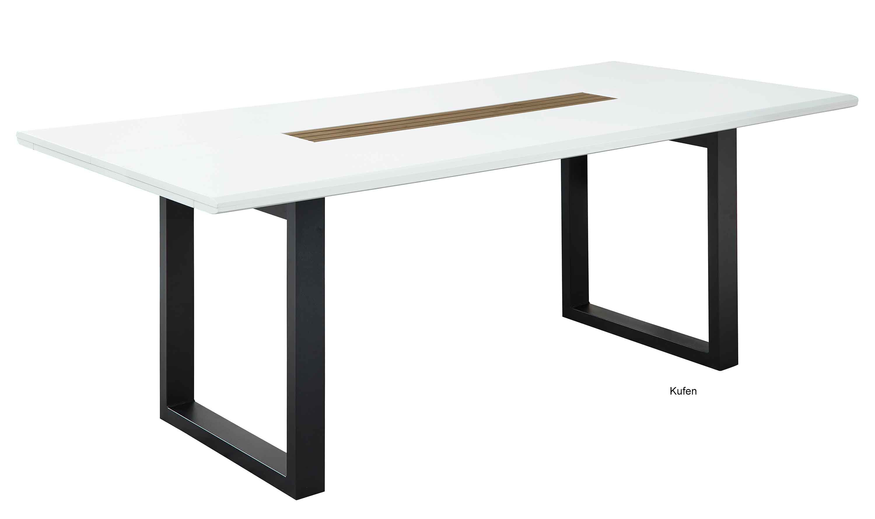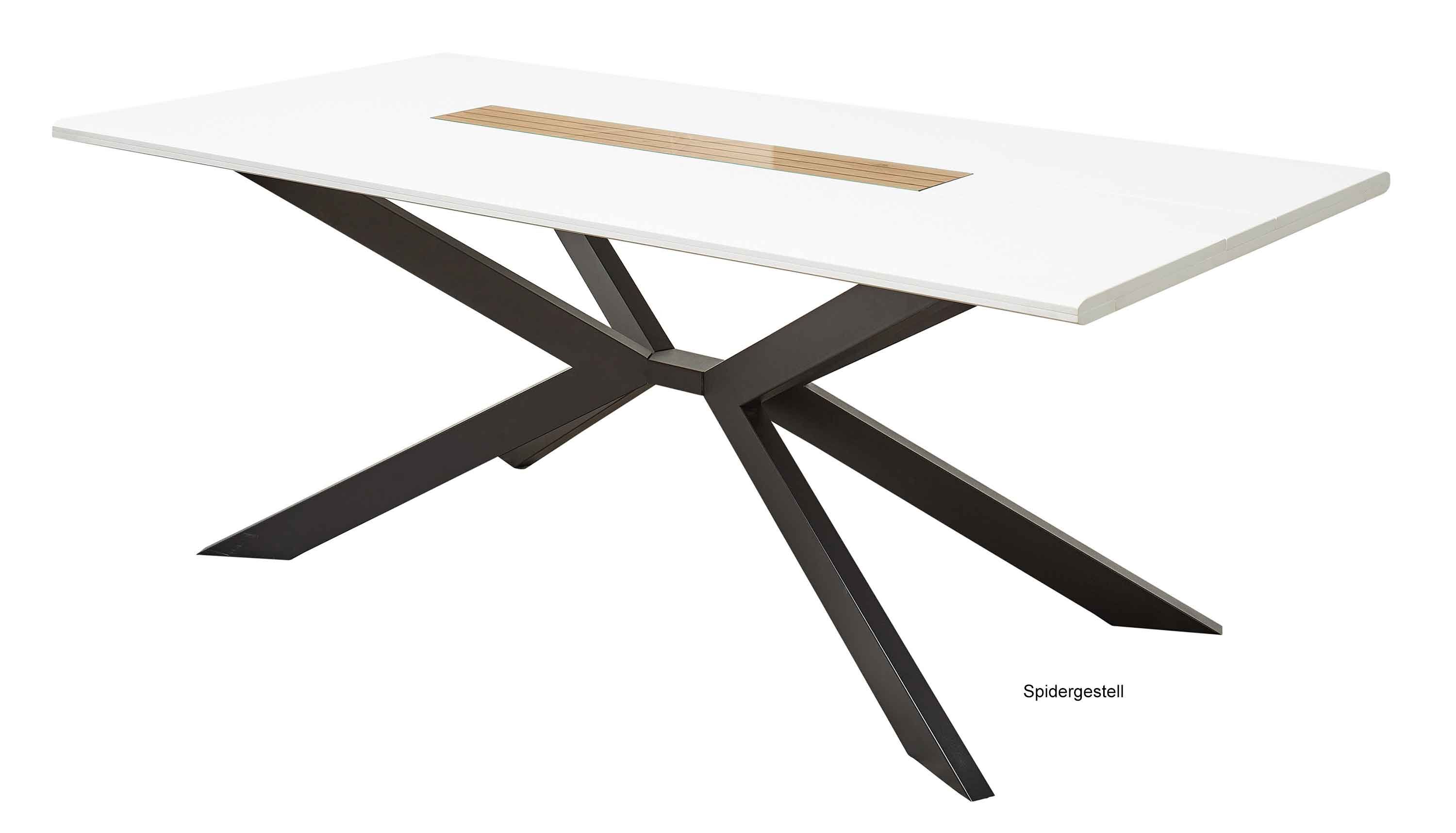 Erleben Sie mit dem Charme des weissen Esstisches gemütliche Stunden in Familie oder mit Freunden. Der Oberflächenmix aus weiß und schwarz erzeugt einen sehr modernen Kontrast, der mit der Einlage in artisan-eiche-Dekor unter Glas einen besonderen Blickfang erlebt. Die aufwendige Paneel-Optik dieser Einlage und die soft gerundeten Tischkanten zeugen von der hochwertigen und liebevollen Verarbeitung des Tisches. Das Gestell des 180x100 cm großen Esstisches können Sie als Kufen, X-förmige Wangen oder als Spidergestell wählen.