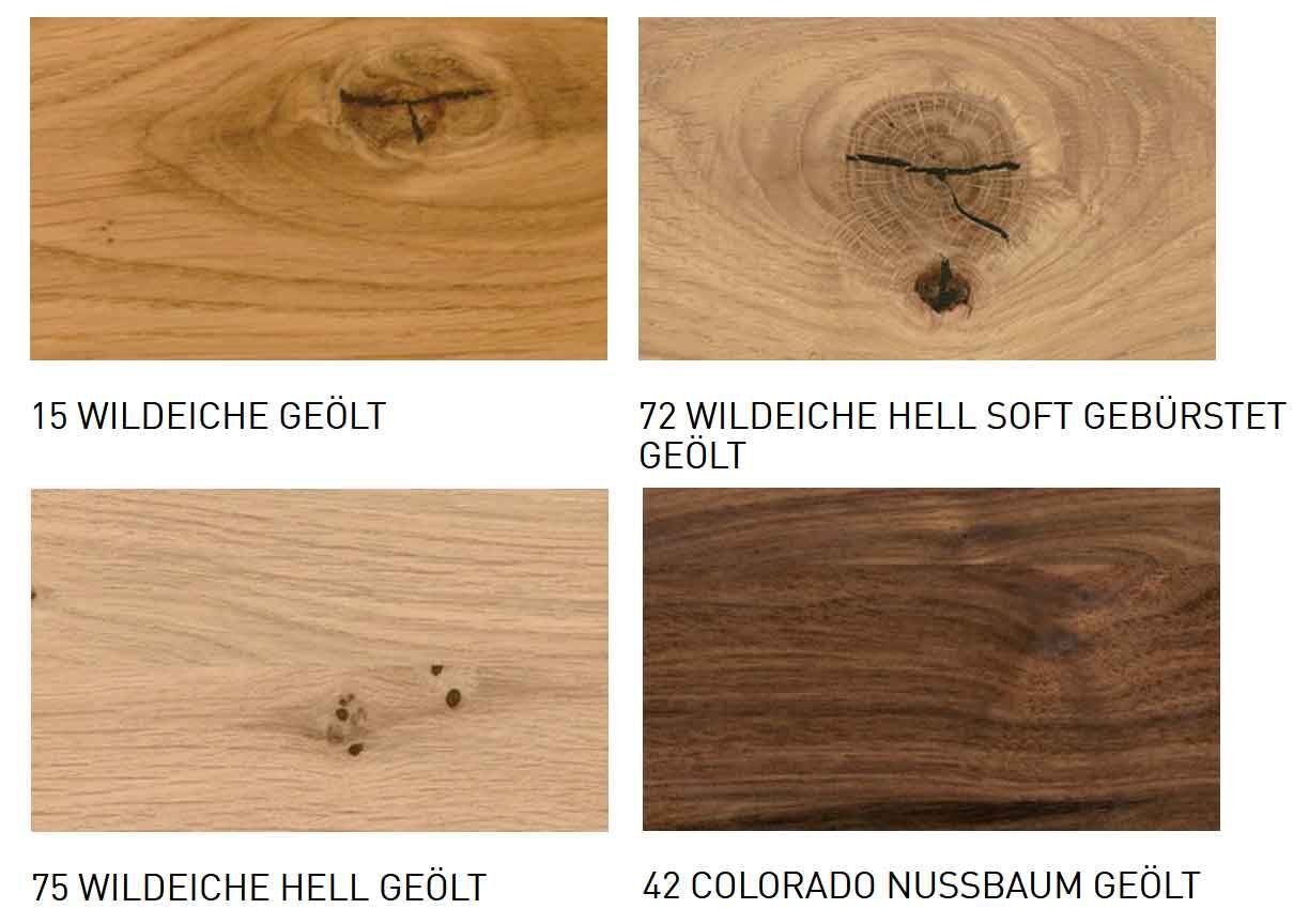 | Holzart/-dekor: | Eiche, Nussbaum, Wildeiche, Wildeiche bianco |