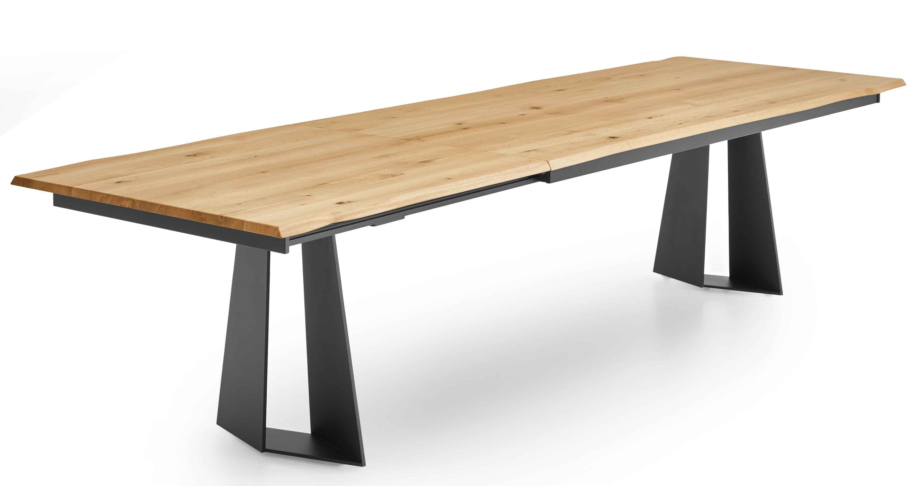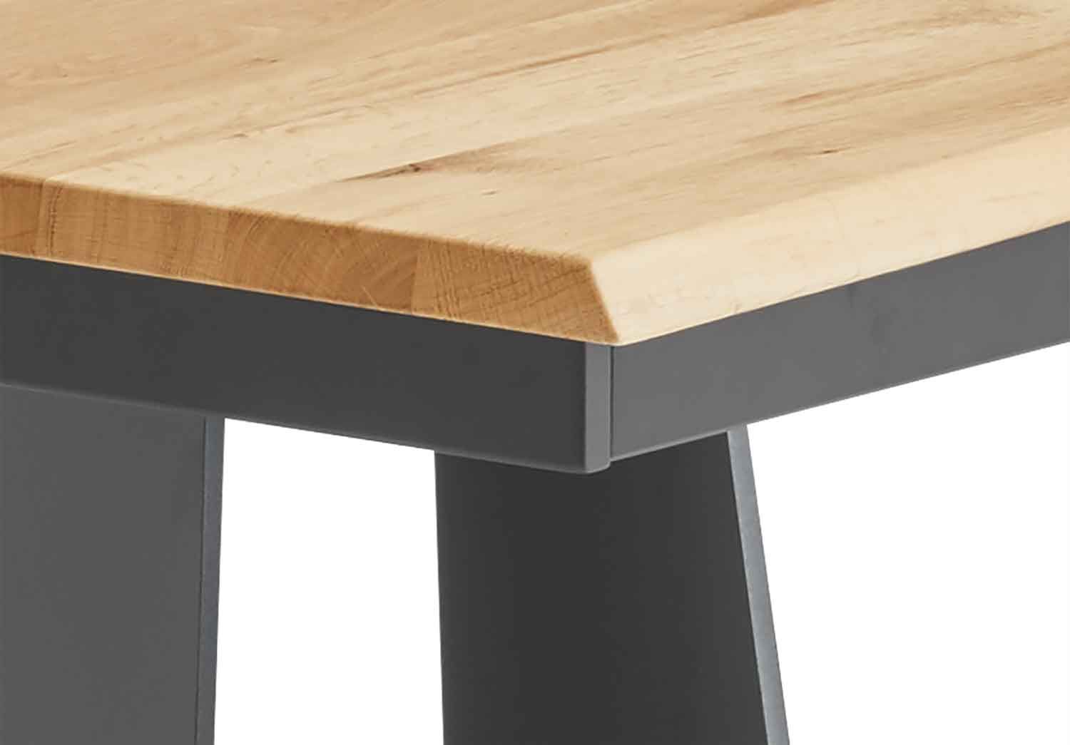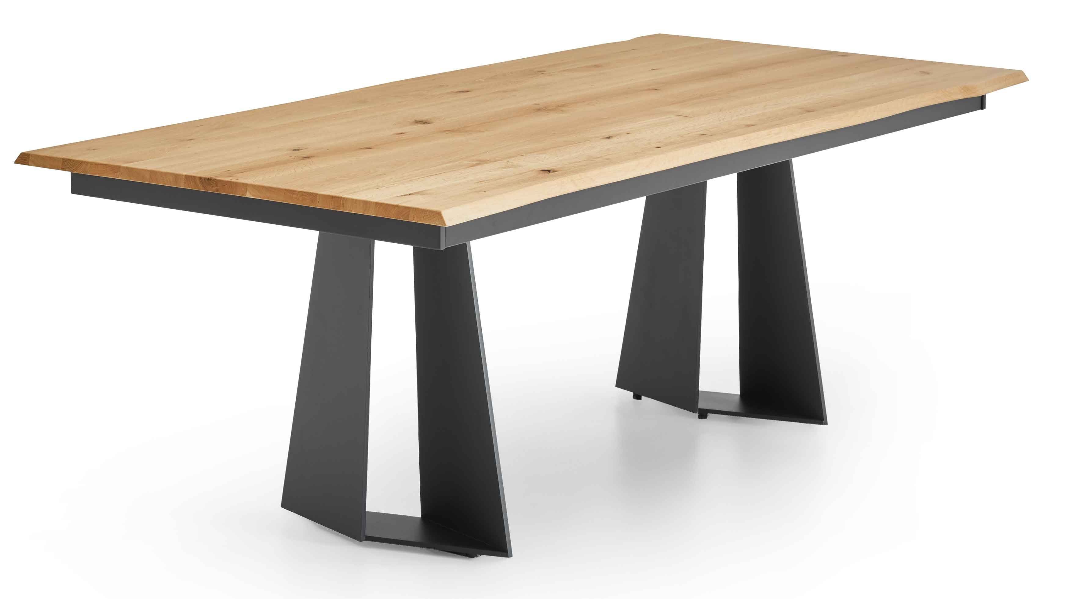 Dieser exklusive Esstisch aus dem Hause Venjakob vereint traditionelle Handwerkskunst mit modernem Design und höchsten Ansprüchen. Die massive Tischplatte aus massiver europäischer Wildeiche ist ein klares Bekenntnis zu verantwortungsvollem Umgang mit natürlichen Ressourcen. Dank unterschiedlicher Behandlungstechniken stehen Ihnen vier attraktive Plattenoptiken zur Auswahl – jede mit individueller Ausstrahlung und veredelt durch eine markante, dekorative Baumkante, die den natürlichen Charakter des Tisches unterstreicht. Wer eher auf klare Linien setzt, kann sich auch für eine gerade abgeschrägte Kante entscheiden. Wählen Sie aus vier Größen genau die Variante, die zu Ihrem Raumkonzept passt. Für noch mehr Flexibilität im Alltag oder bei besonderen Anlässen lässt sich der Esstisch optional mit einem praktischen, rollbaren Kopfauszug erweitern. Das anthrazitfarbene Metallgestell setzt einen modernen Kontrast zur warmen Holzplatte und überzeugt mit einem klaren, designorientierten Look, der jedem Essbereich das gewisse Etwas verleiht. Überzeugen Sie sich selbst - mit 5 Jahren Herstellergarantie gemäß Qualitäts- und Gütepass steht dieser hochwertige Baumkantentisch für geprüfte Langlebigkeit und echte Wertarbeit.